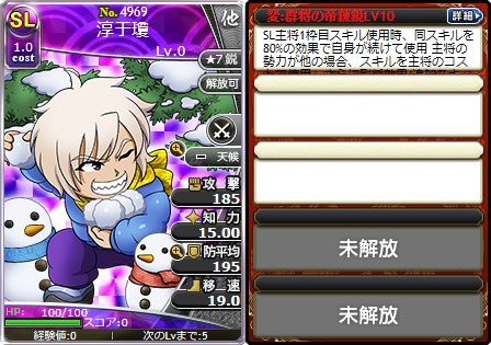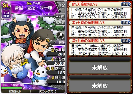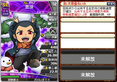 コスト2.0で「天帝雷令LV8」を所持した「No.4967 SL曹操」や、