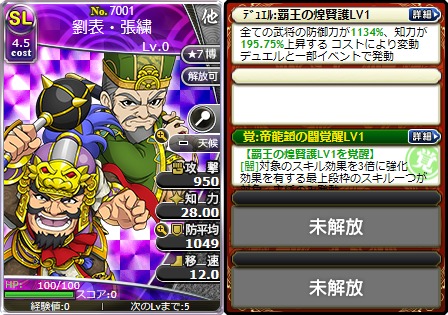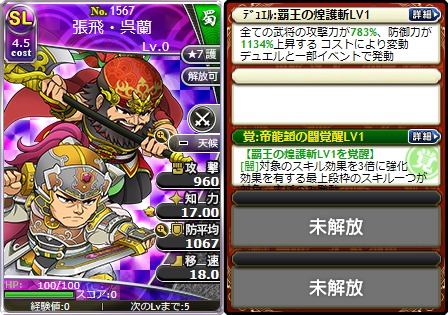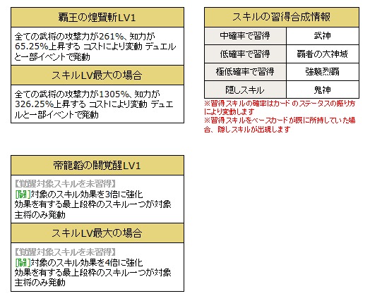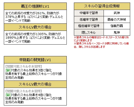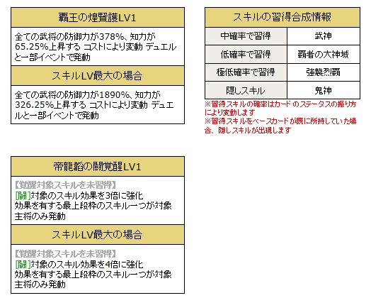 「覇王の煌賢護LV1」「帝龍韜の闘覚醒LV1」を所持した