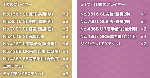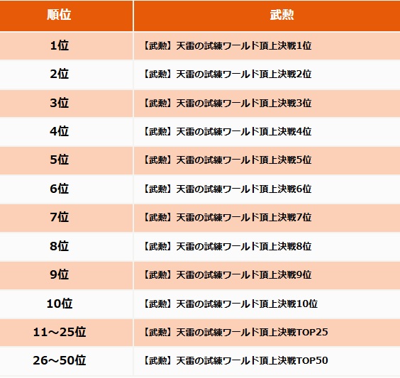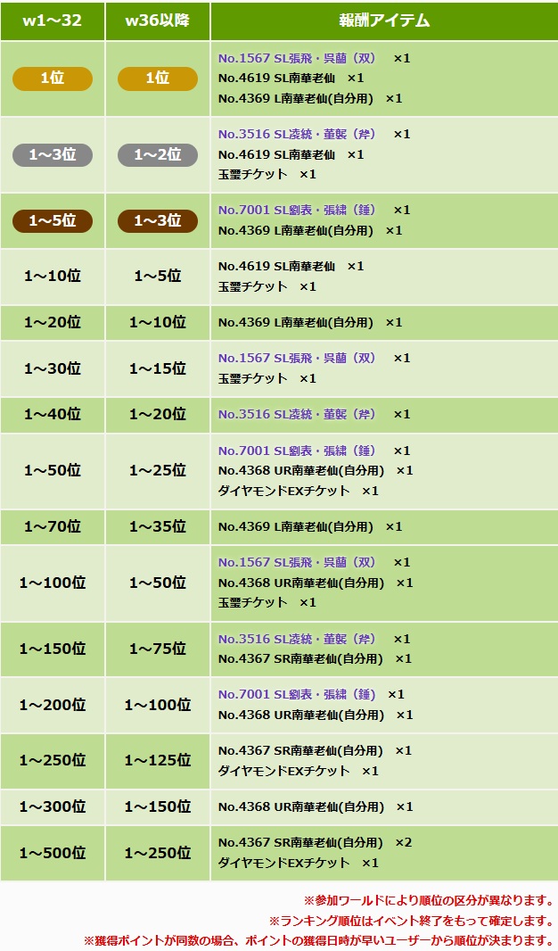 なお、ワールドによって獲得できる報酬の順位が一部異なります。