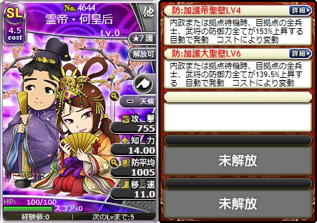 「加護帝聖壁」「加護大聖壁」を所持した「No.4644 SL霊帝・何皇后」が