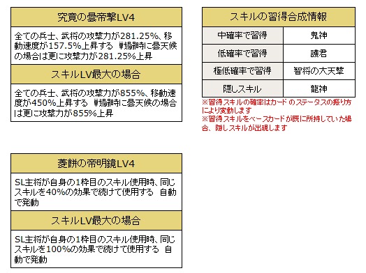 同じ武将カードを引いた場合でもスキルLVが異なる場合もございます。