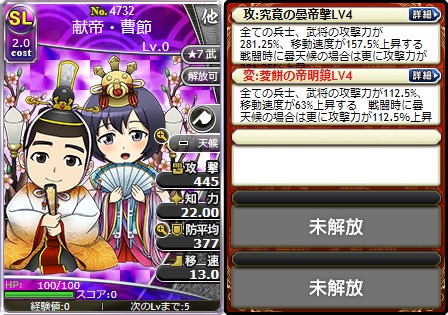 「究竟の曇帝撃」「菱餅の帝明鏡」を所持した「No.4732 SL献帝・曹節」、