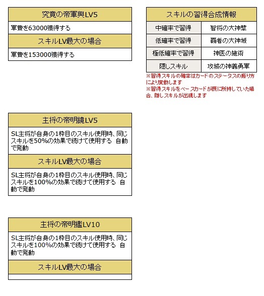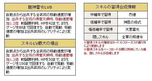 ・紹介している武将のスキルの効果値等は、該当の武将が所持している場合の効果値です。
