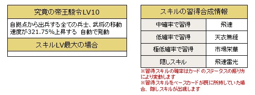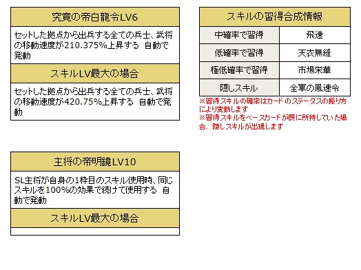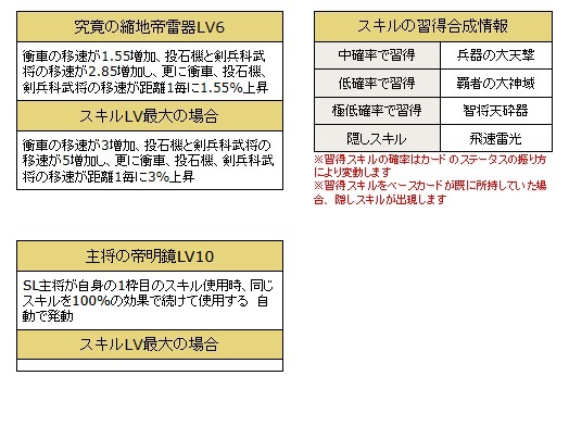 ・変化系スキルを所持している武将カードの1枠目のスキルが発動した際、同じ効果で発動します。