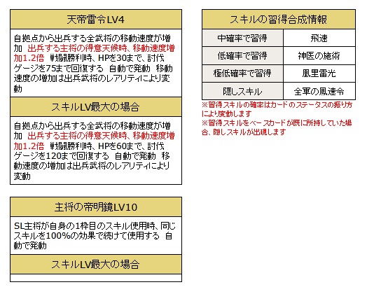 「天帝雷令LV4」「主将の帝明鏡LV10」を所持した