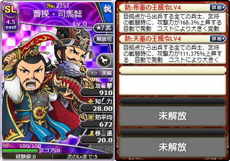 「帝軍の王威令LV4」「天軍の王威令LV4」を所持した