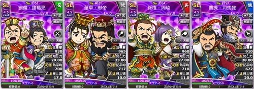 「No.1353 SL劉備・諸葛亮」、「No.4621 SL董卓・献帝」、